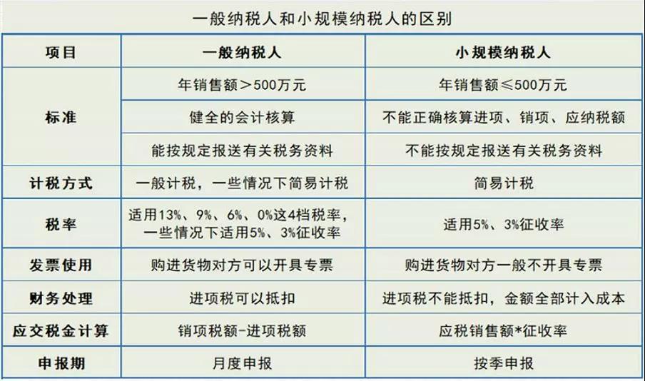 以下是一般納稅人和小規模納稅人的對比表,可以更清晰的區分: