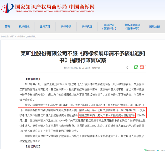2、有可能商標會被別人撤銷《中華人民共和國商標法》第四十九條第二款注冊商標成為其核定使用的商品的通用名稱或者沒有正當理由連續三年不使用的,任何單位或者個人可以向商標局申請撤銷該注冊商標。不難從法條中看出:注冊商標如果連續三年停止使用,任何個人或者單位都是享有申請撤銷的該注冊商標的權利。若商標局收到該商標三年未使用的申請撤銷,商標局會向商標注冊人寄往通知書,通知書收件地址是根據商標注冊人提供的地址,若企業已遷移,無法收到通知書,在舉證期限,商標注冊人無法提供商標使用證據,商標局會發文撤銷該商標。